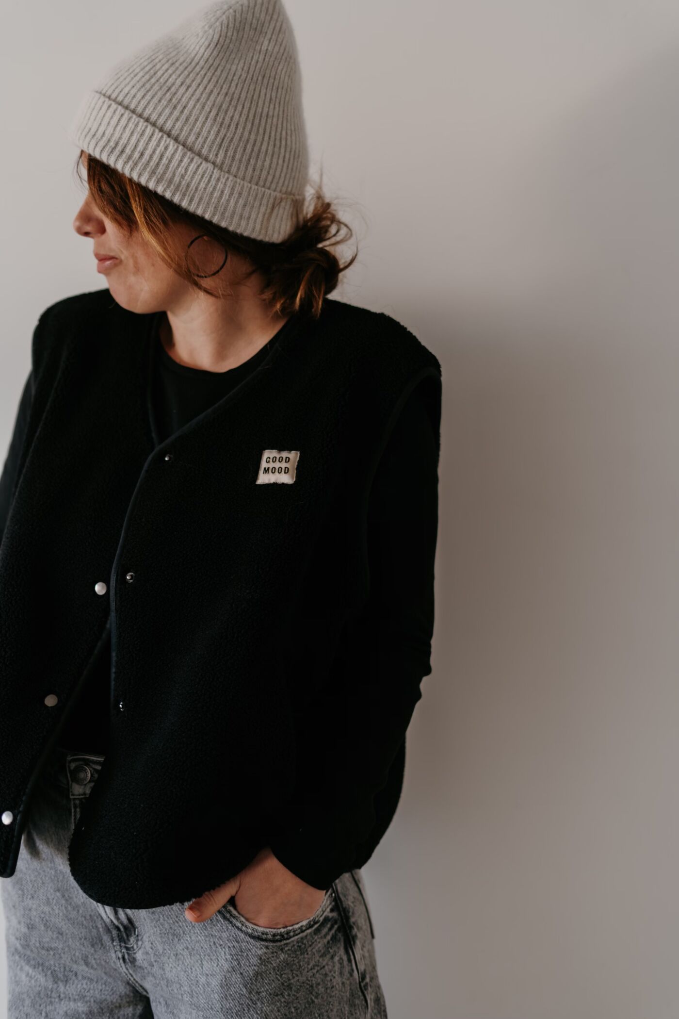 📸 Dernières photos : découvrez les superbes gilets réalisés par Ingrid de @auxcouleurspastels, qui a su sublimer notre sherpa Tabara dans ses coloris Black & Écru.