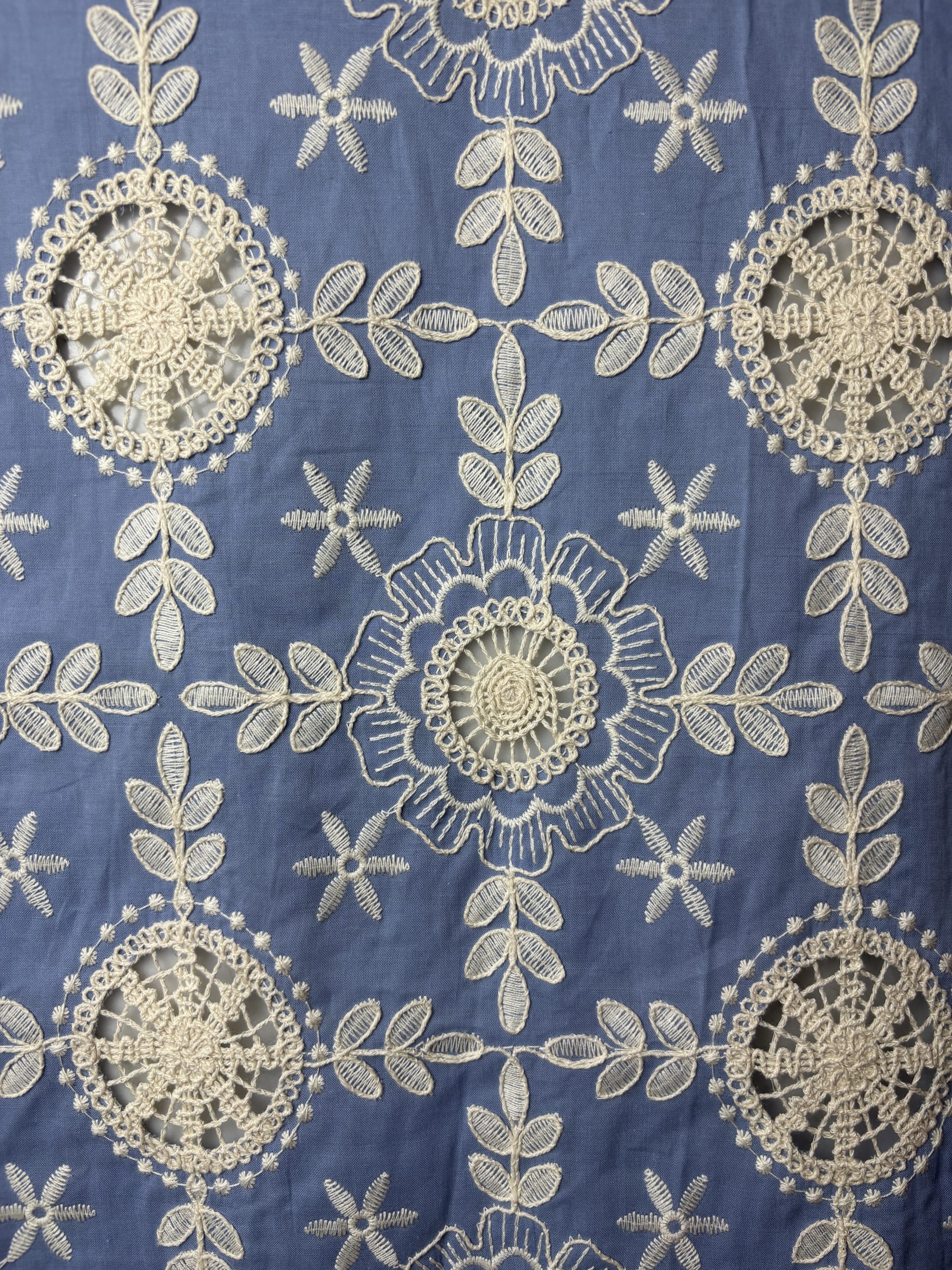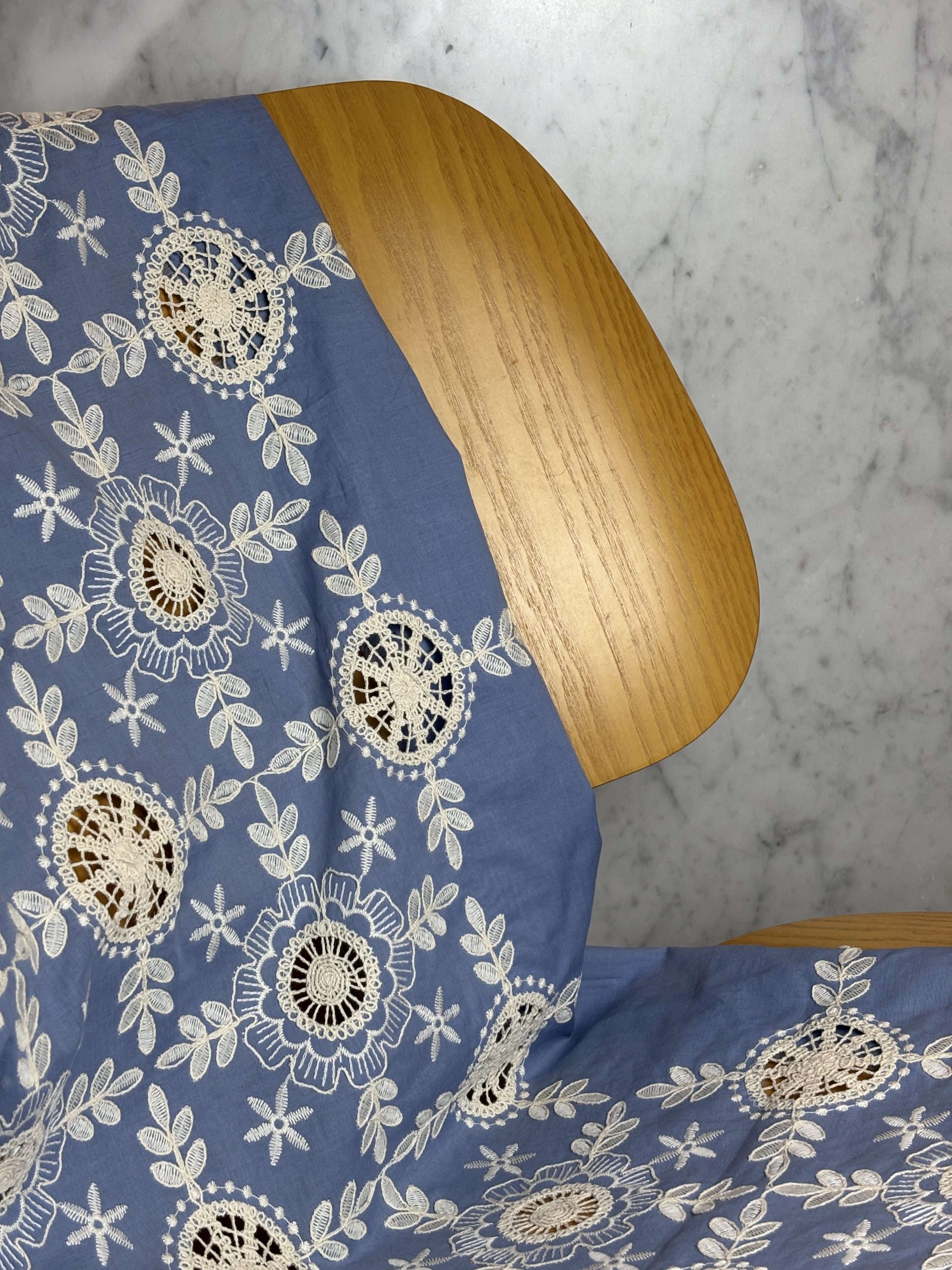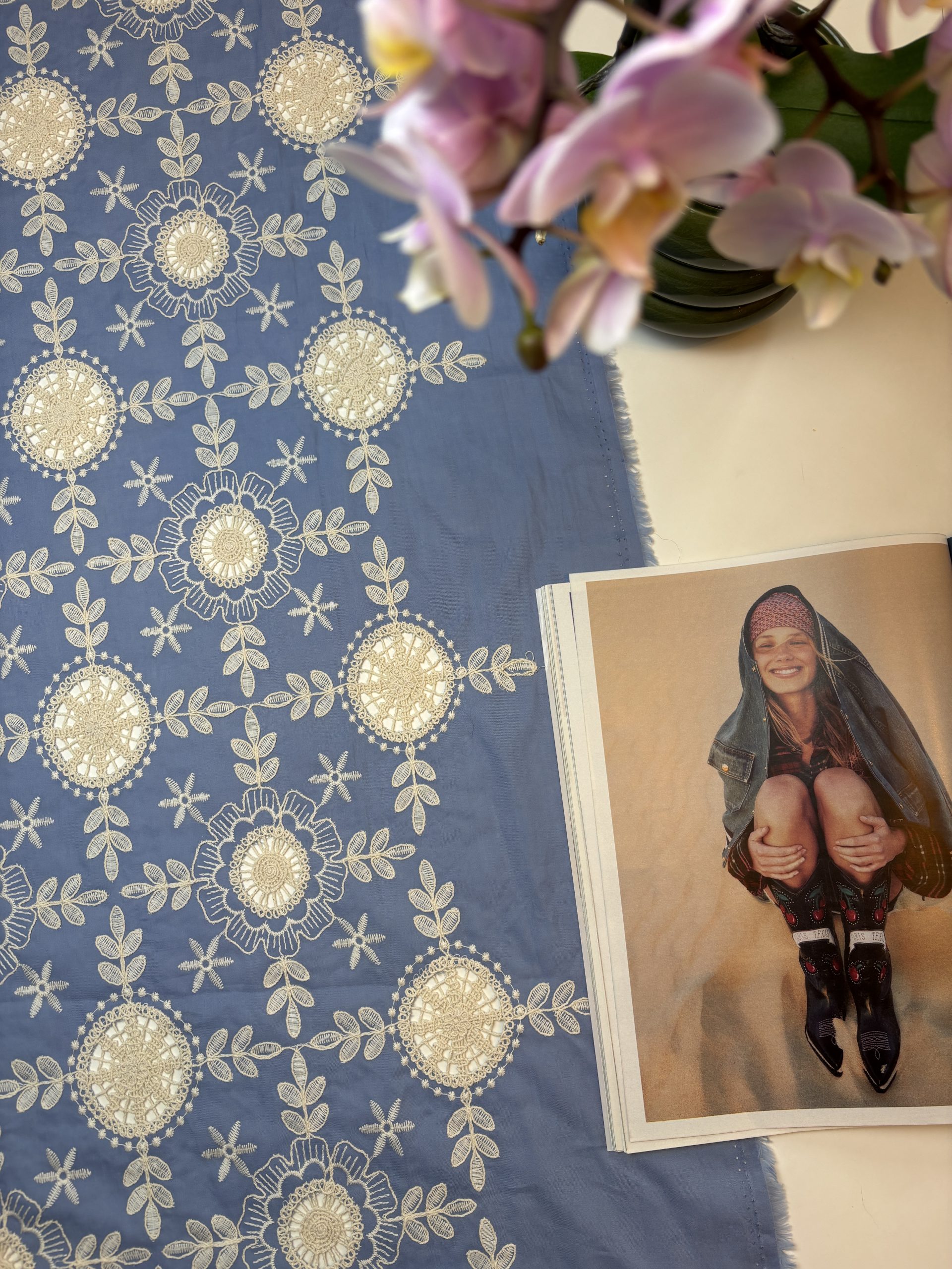 Tissu DAKOTA – Duo Dentelle & Guipure – « Bleu Hortensia »