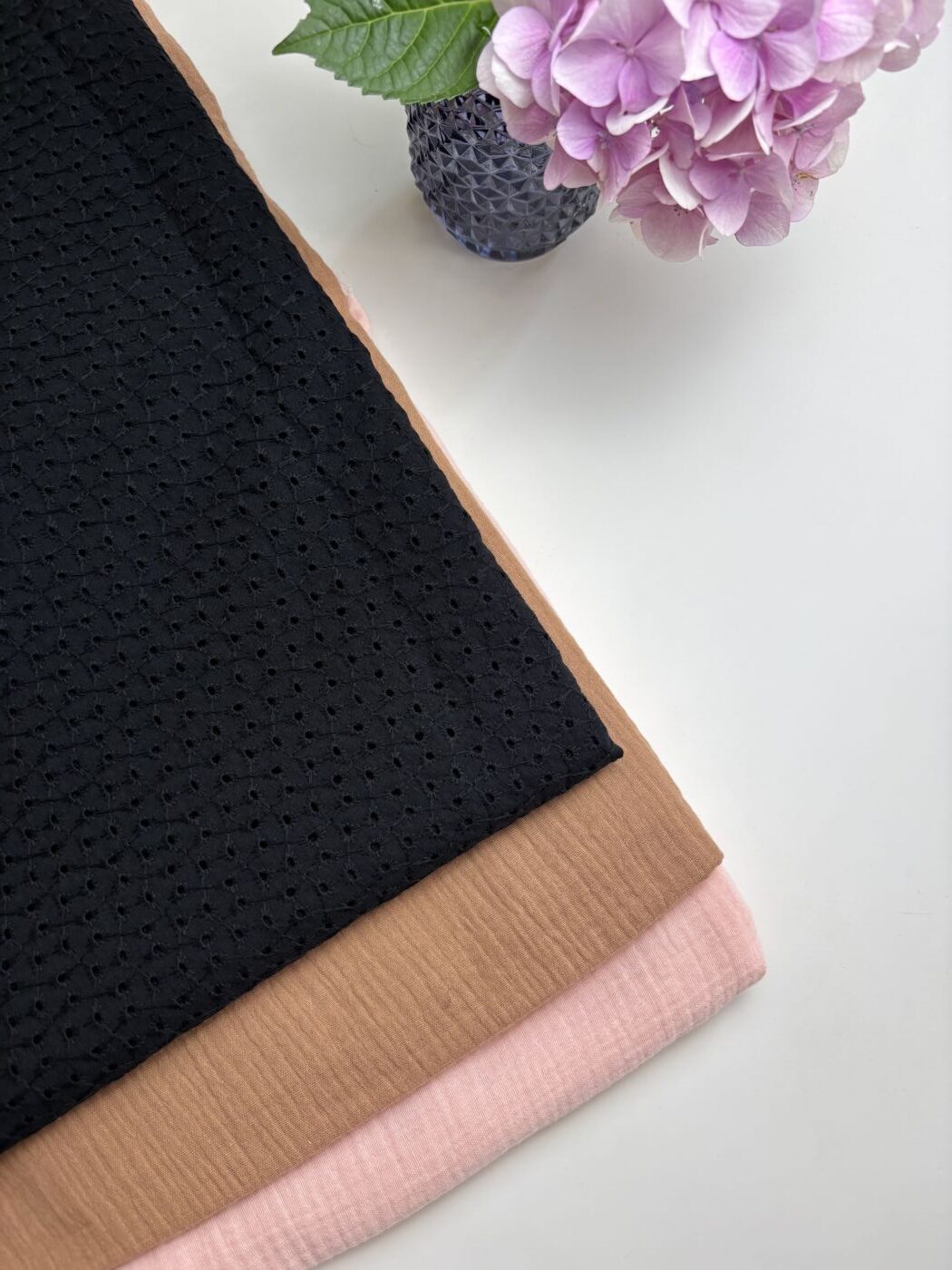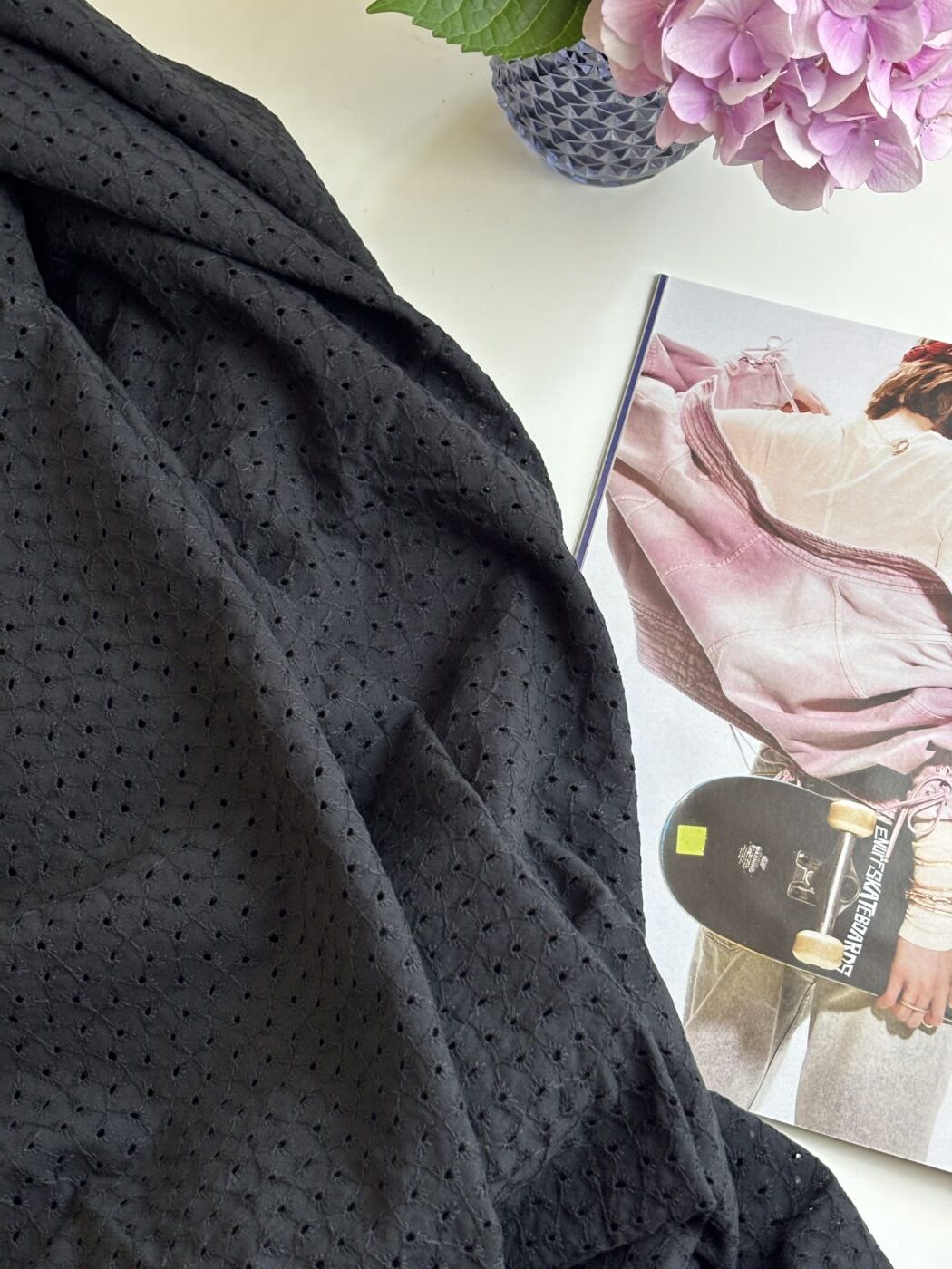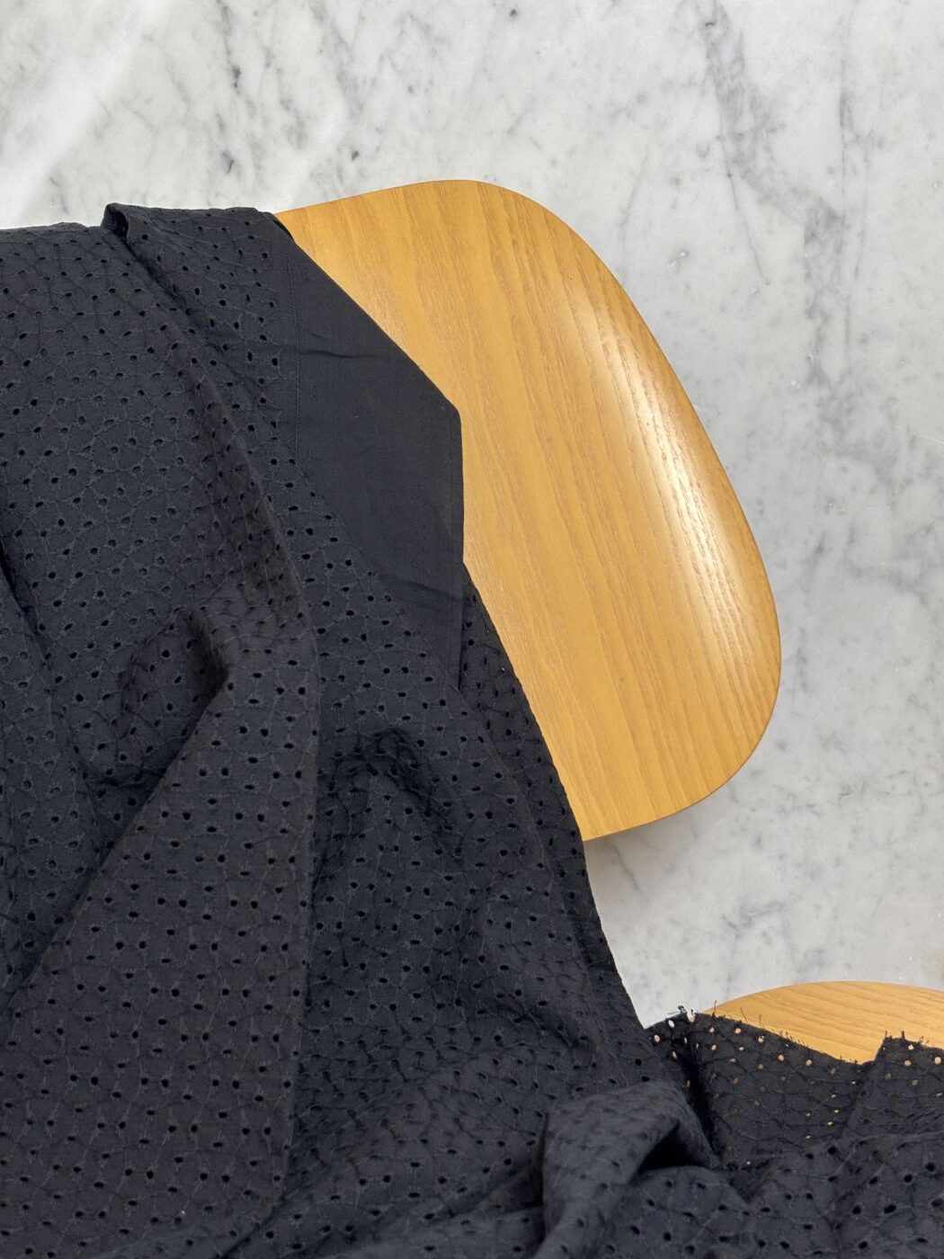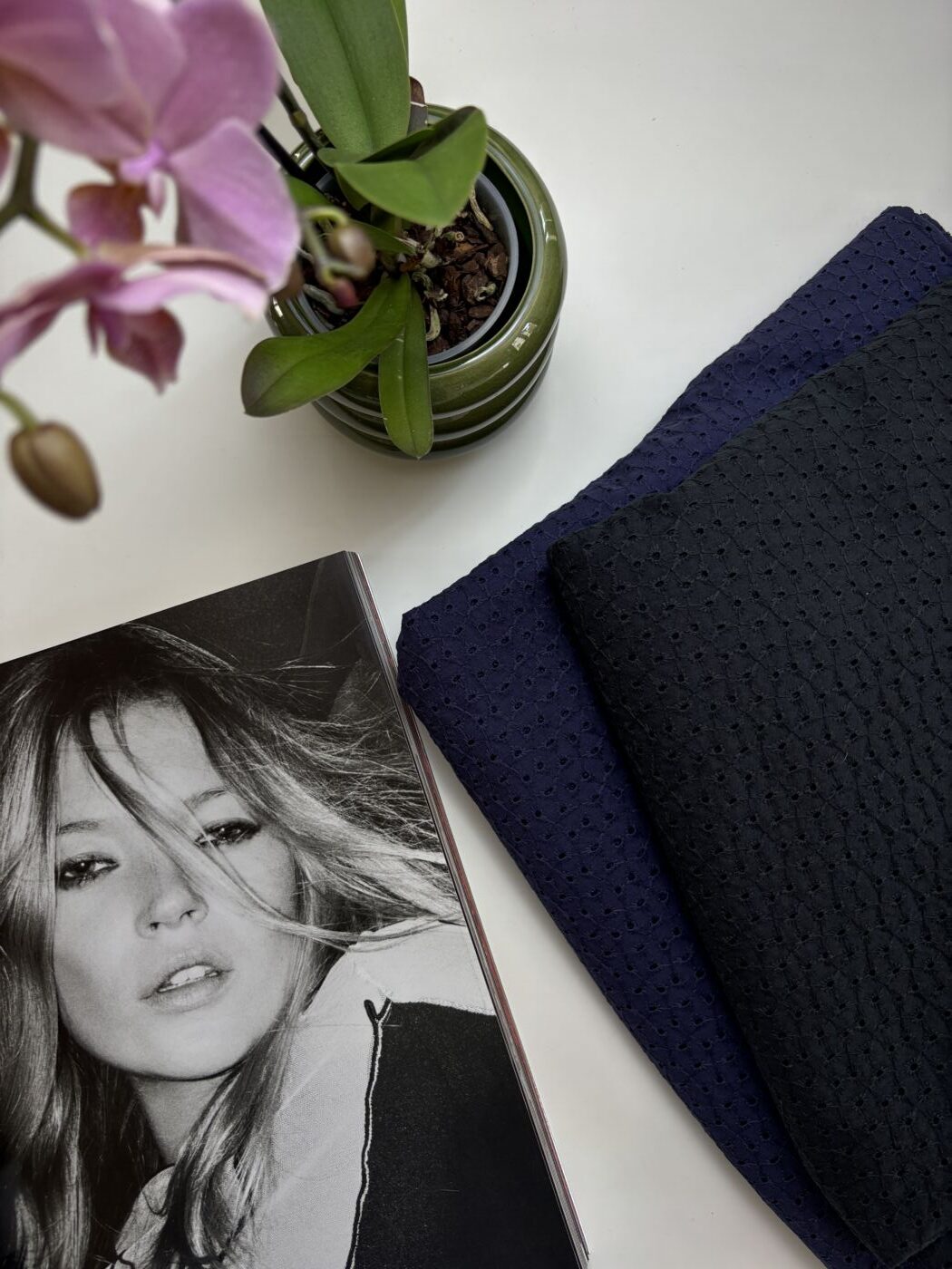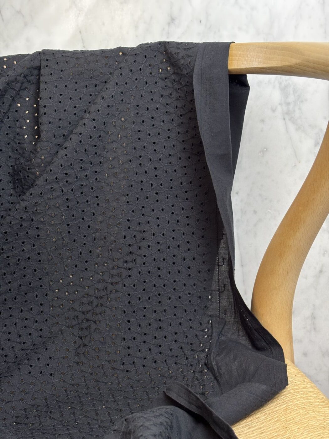 Réalisé en 100 % coton, Max met à l’honneur la broderie anglaise dans son expression la plus authentique. Le tissu présente un motif ajouré régulier, composé de petits œillets brodés et reliés par un réseau de points fins, qui confèrent à la matière relief et légèreté. L’armure serrée du coton assure une bonne tenue, tandis que les zones brodées apportent transparence et souplesse.