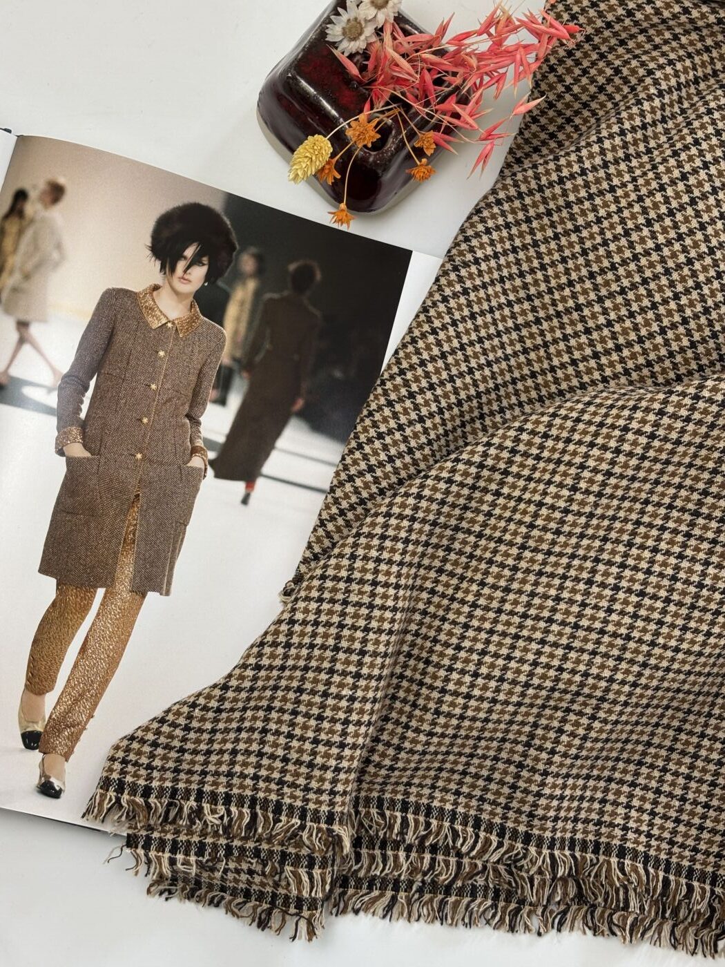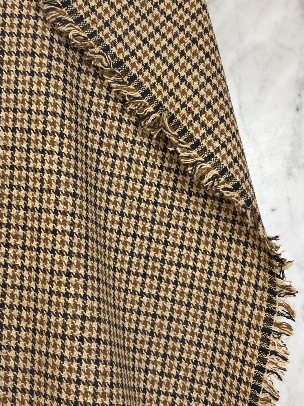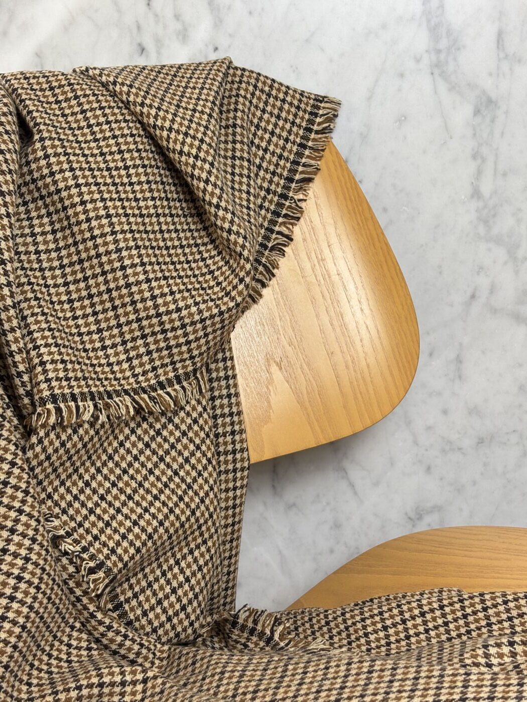 Tissu BETH – pied-de-poule camel & noir – Finition frangée
