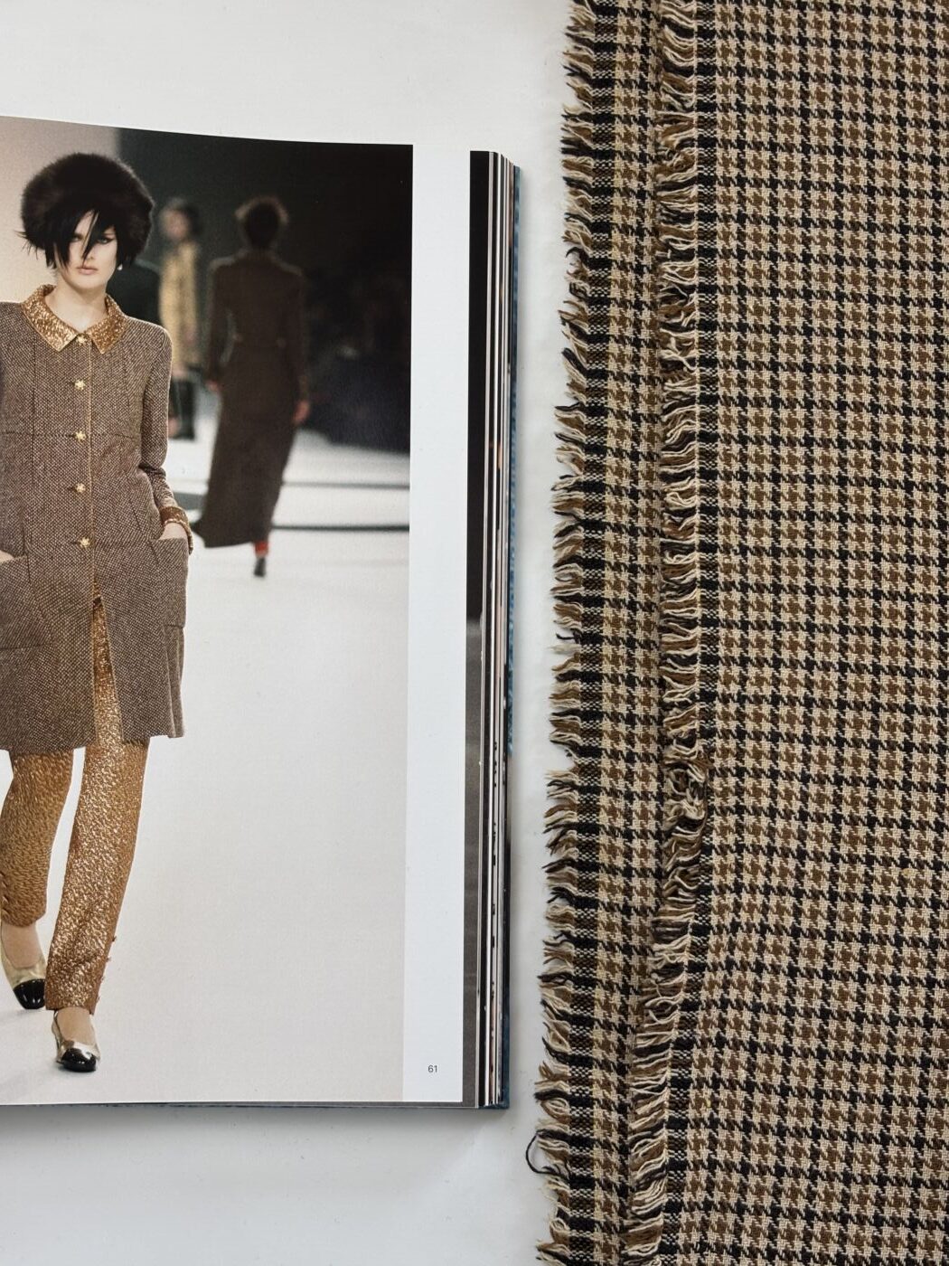 Beth fait partie des incontournables de notre nouvelle collection automne-hiver 2025. Ce tissu à motif pied-de-poule, dans des tons mêlant beige, camel et noir, revisite l’intemporel avec caractère et élégance.