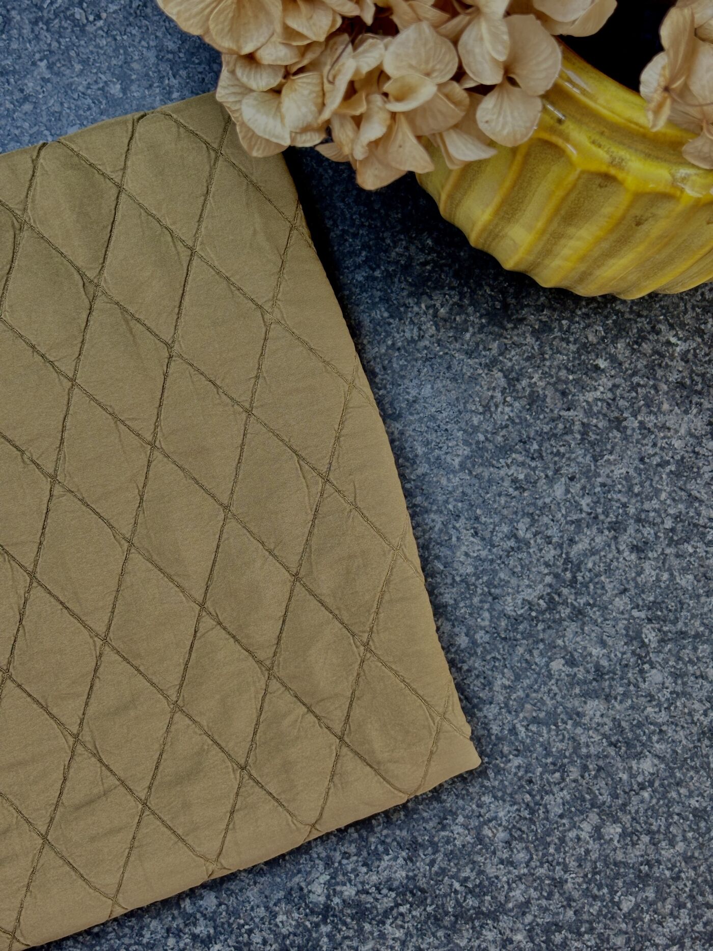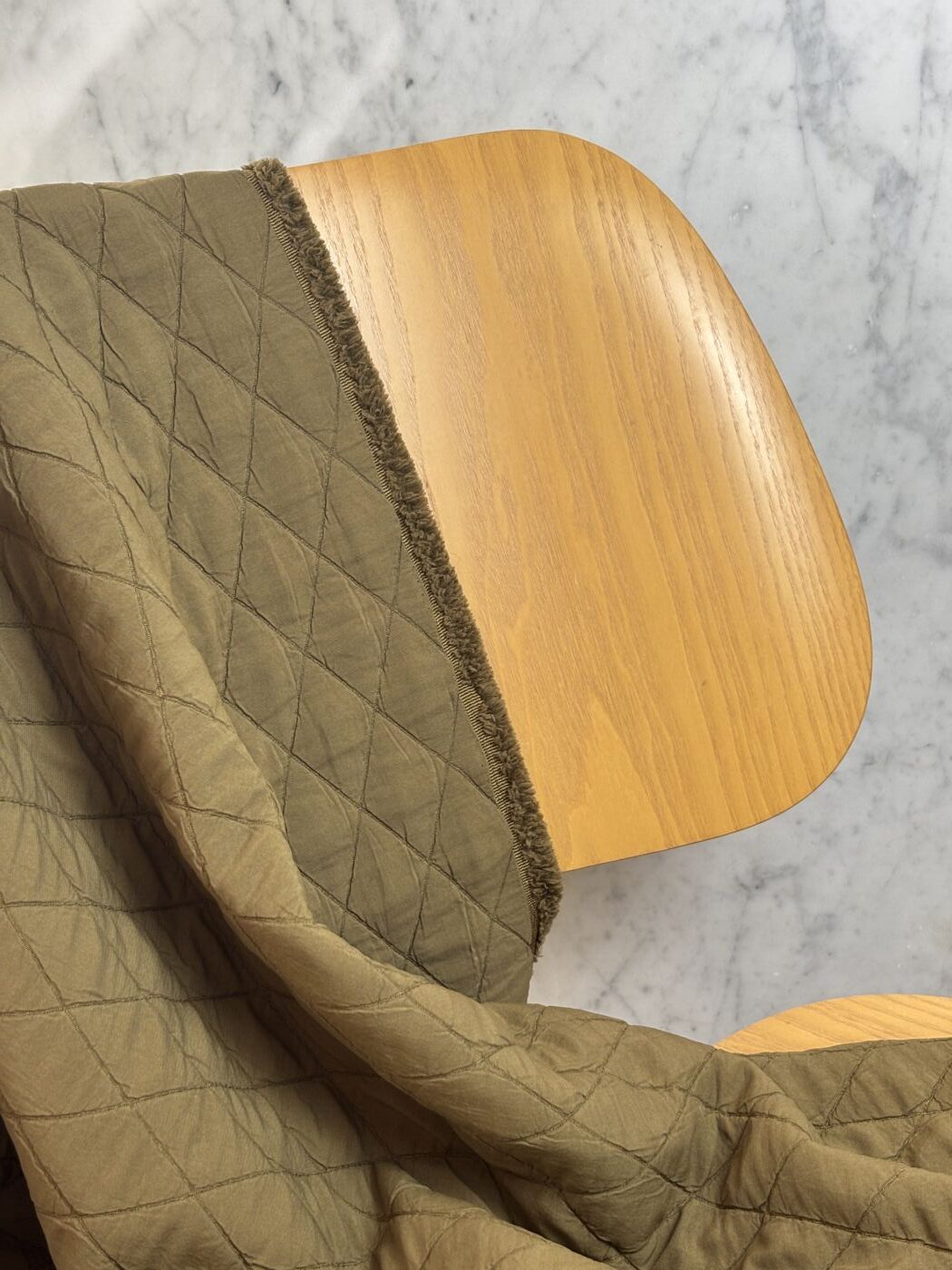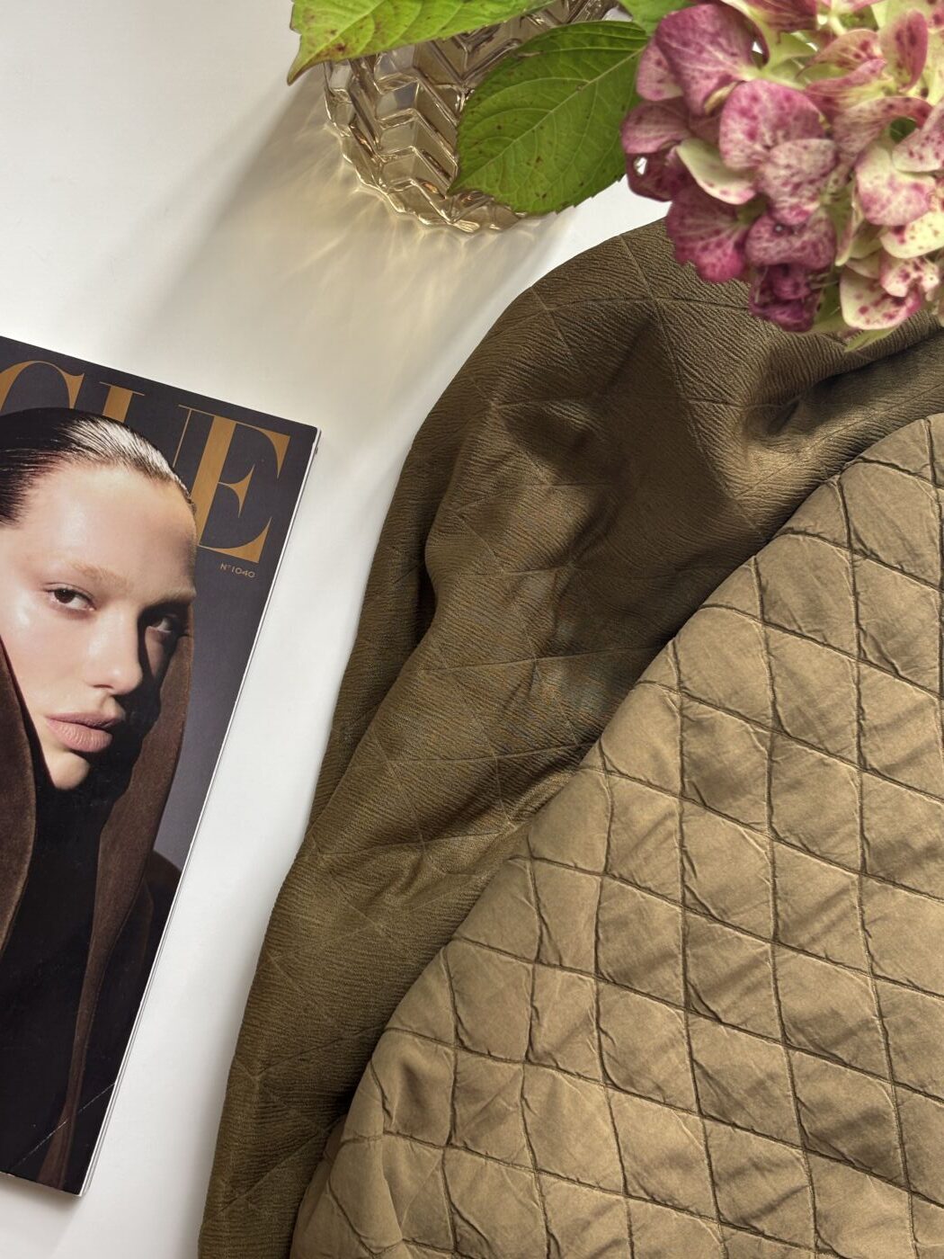Une matière qui conjugue allure et technicité. Oxford, notre jacquard matelassé en polyester recyclé, revisite le classique effet losange avec un relief graphique et élégant.