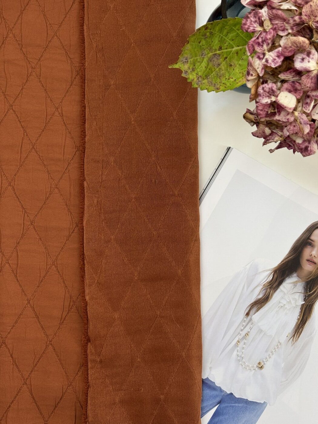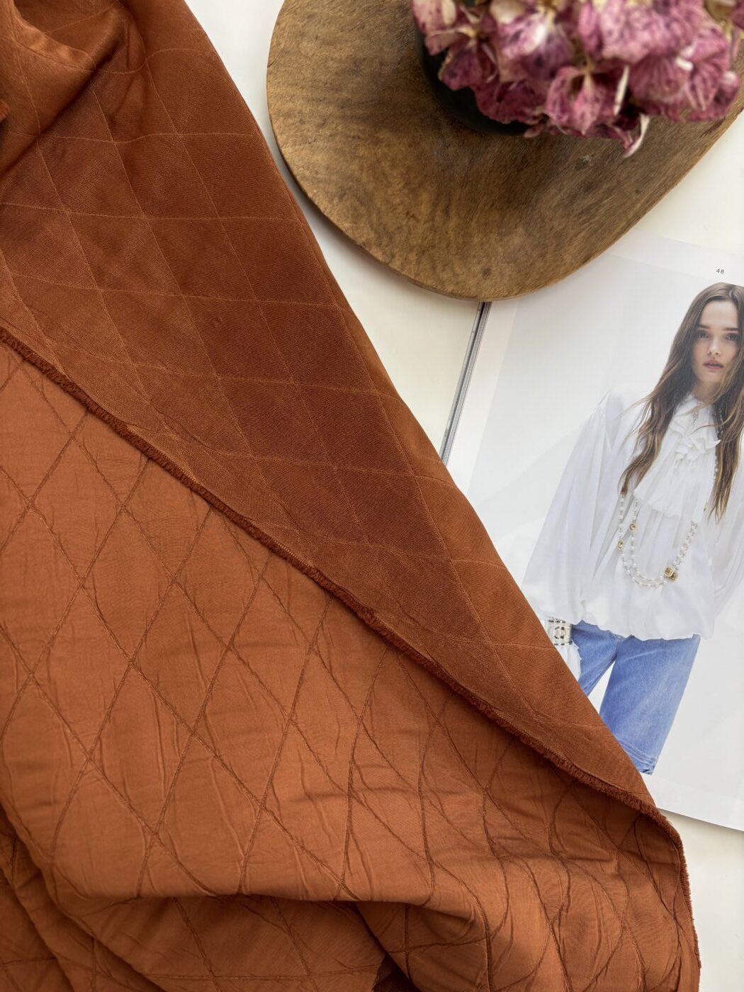 Tissu jacquard matelassé OXFORD – Terre de Sienne