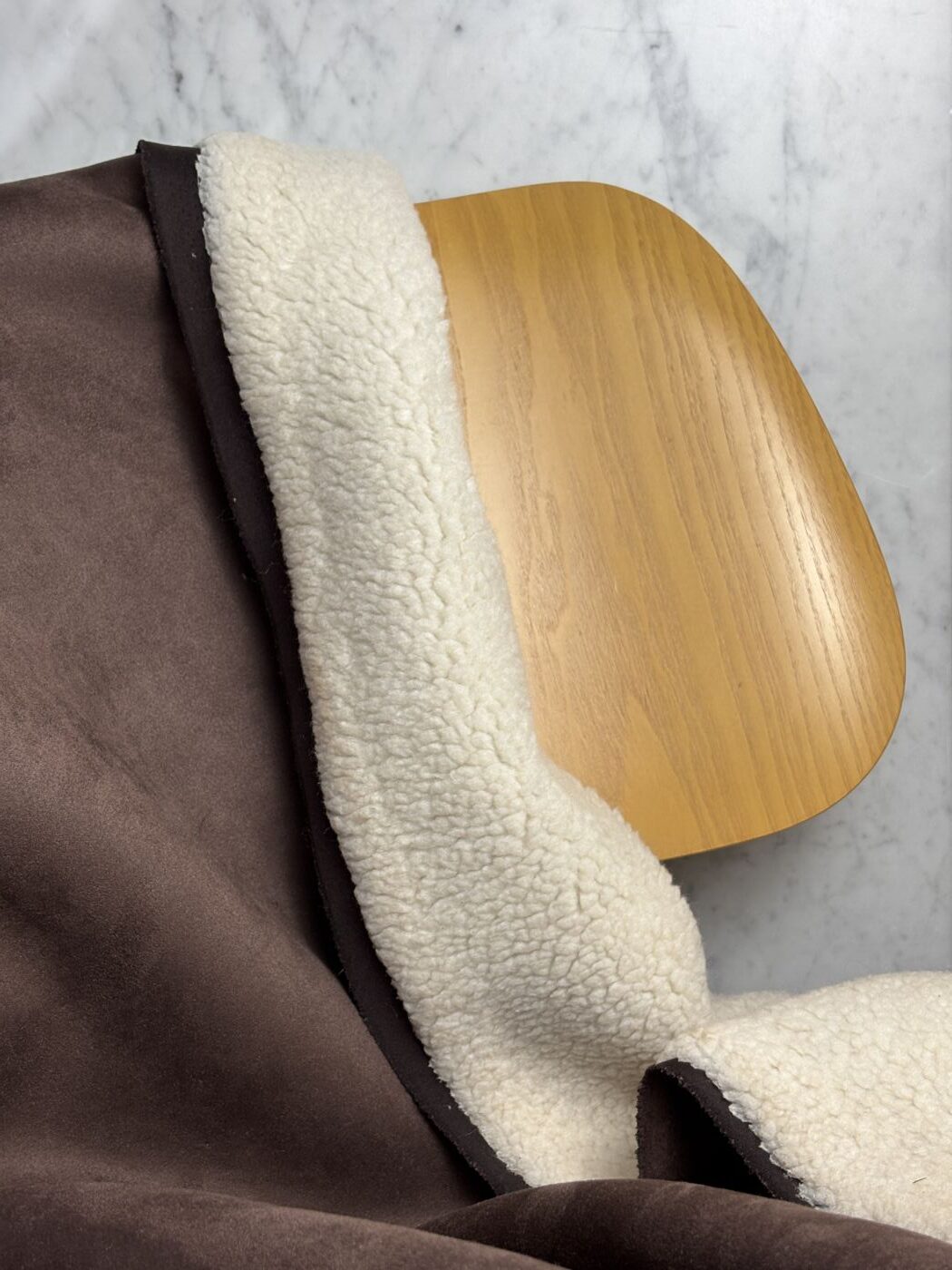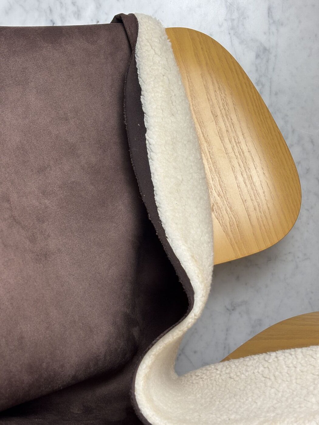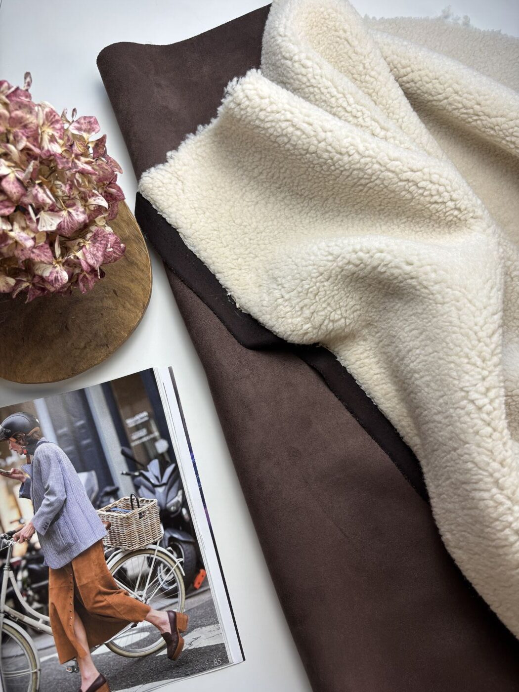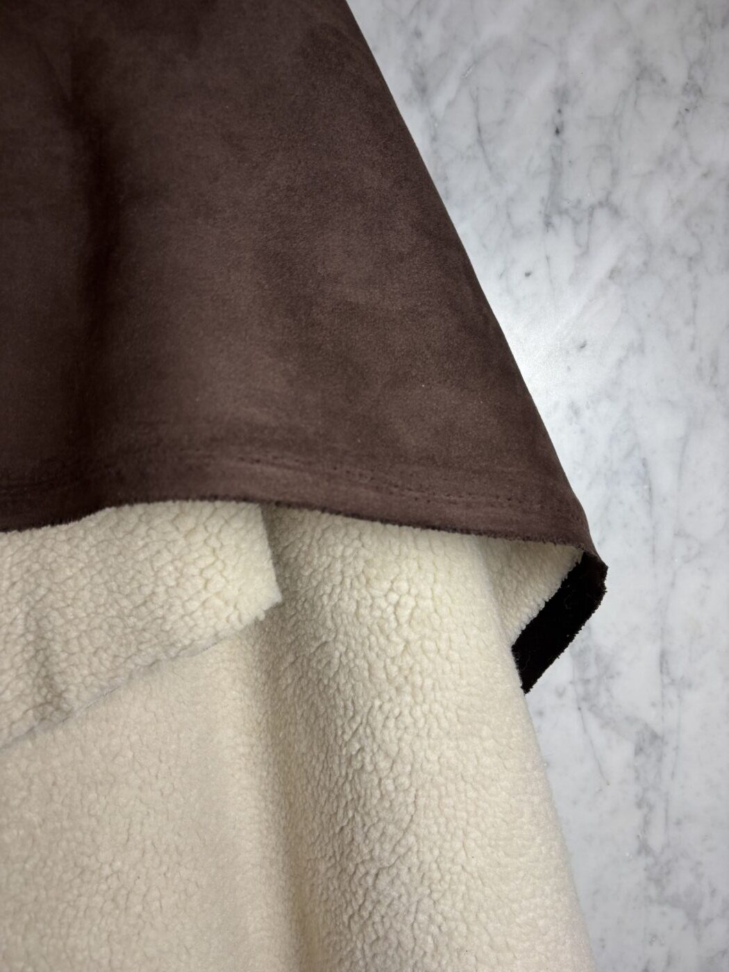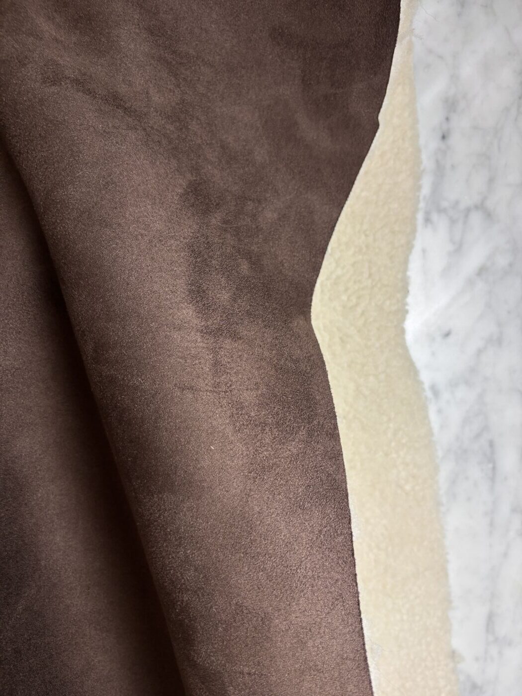 Merry, c’est l’interprétation chic et actuelle d’un grand classique de saison. Ce tissu d’aspect peau lainée est composé d’un sherpa effet mouton contrecollé à une suédine douce et mate, pour une texture à la fois moelleuse, structurée et visuellement chaleureuse.