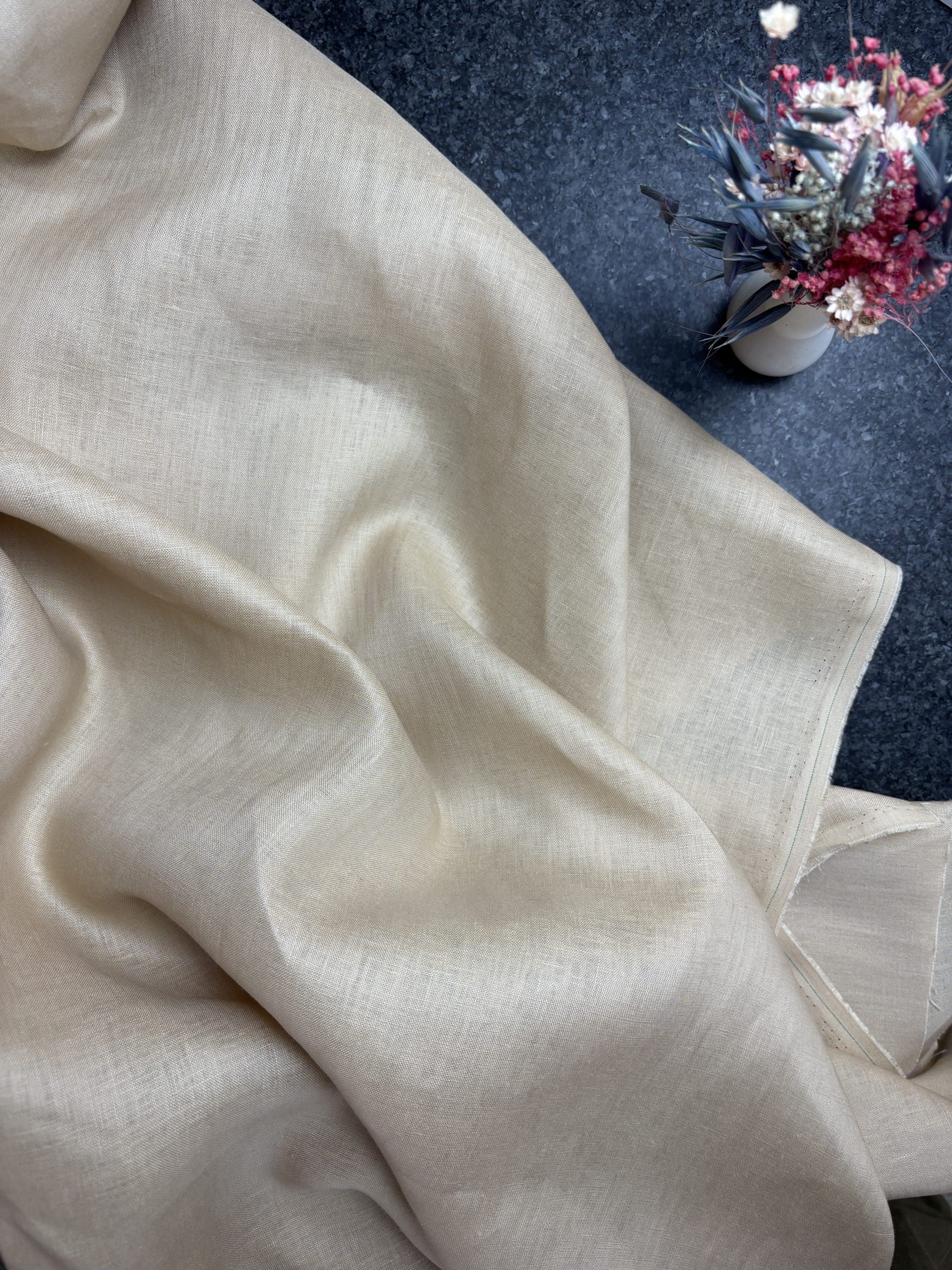 Tissu lin naturel uni BEIGE – Linena