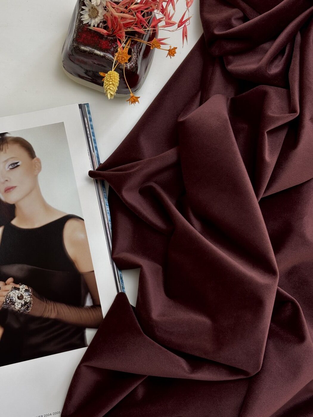 Tissu KERRY – Velours ras uni coloris lie de vin
